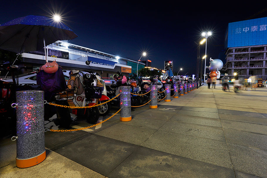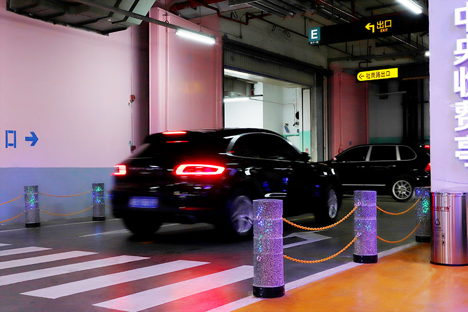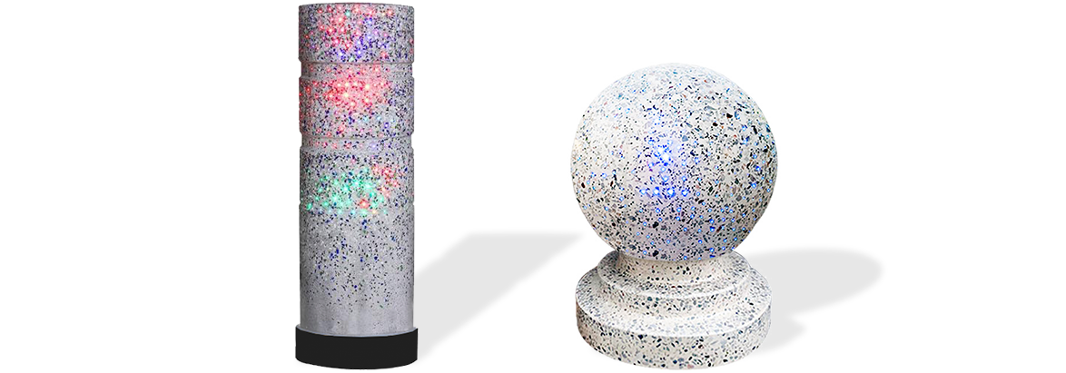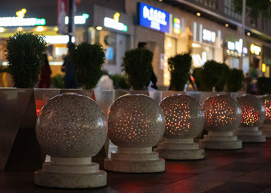 新型路障石材具有擋車功能,提升場所的形象和安全性,夜晚展現(xiàn)出特別絢麗的效果